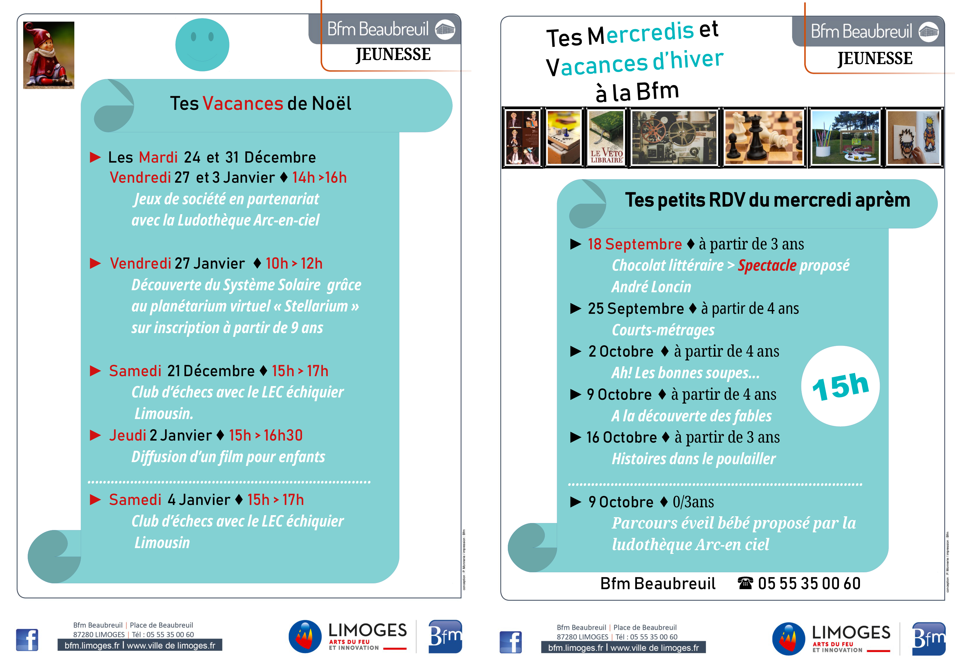 Agenda culturel BFM Beaubreuil Novembre / décembre