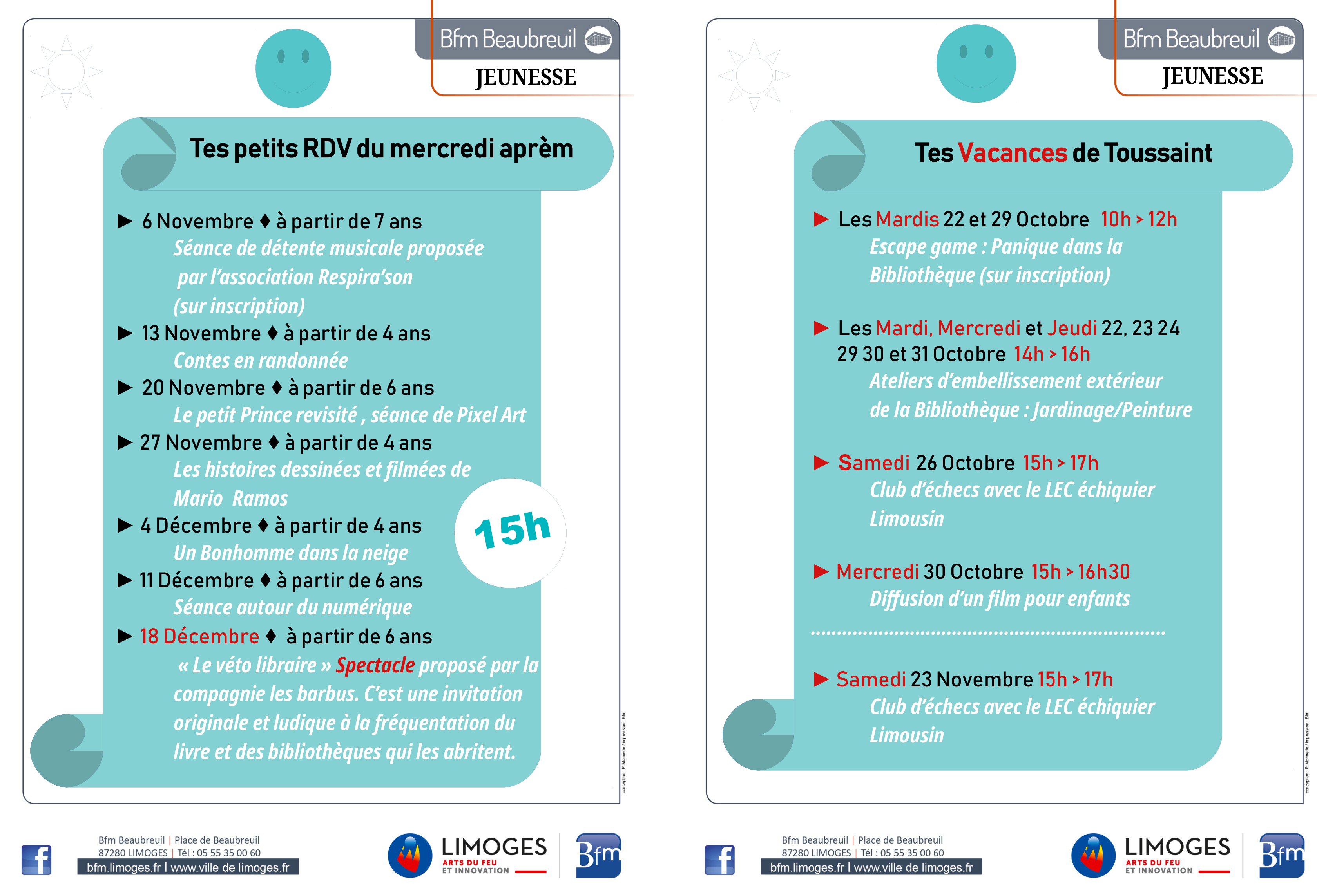Agenda culturel BFM Beaubreuil Novembre / décembre