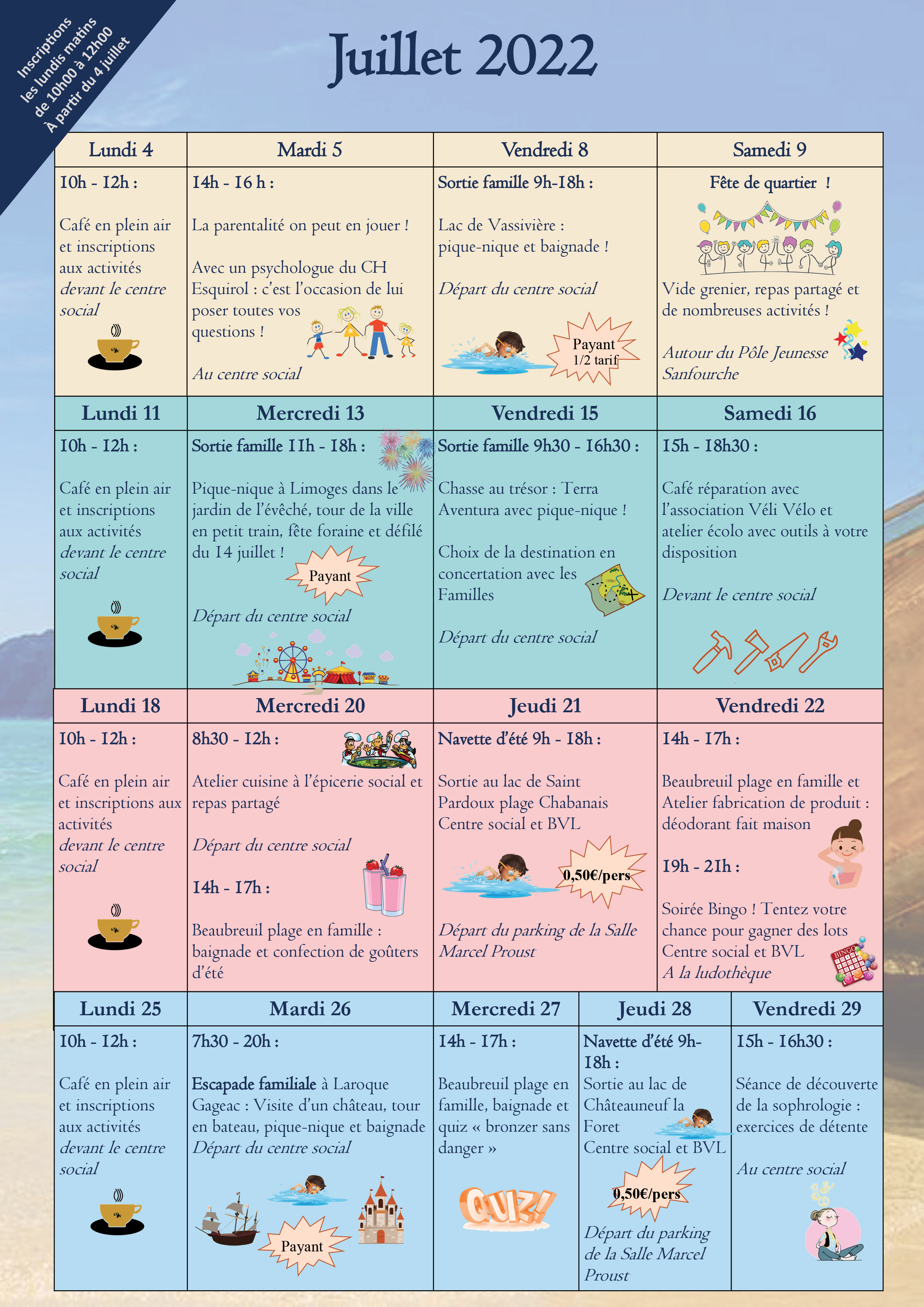 Programme des animations en juillet au centre social de beaubreuil