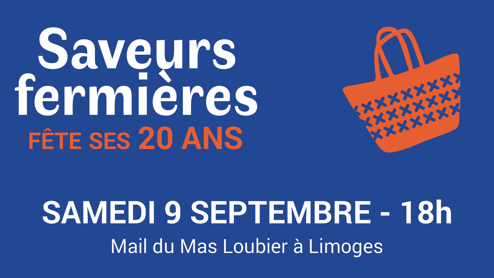 SAMEDI 9 SEPTEMBRE - 18h au Mail du Mas Loubier à Limoges Pour ses 20 ans Saveurs Fermières proposera le Samedi 9 Septembre à…